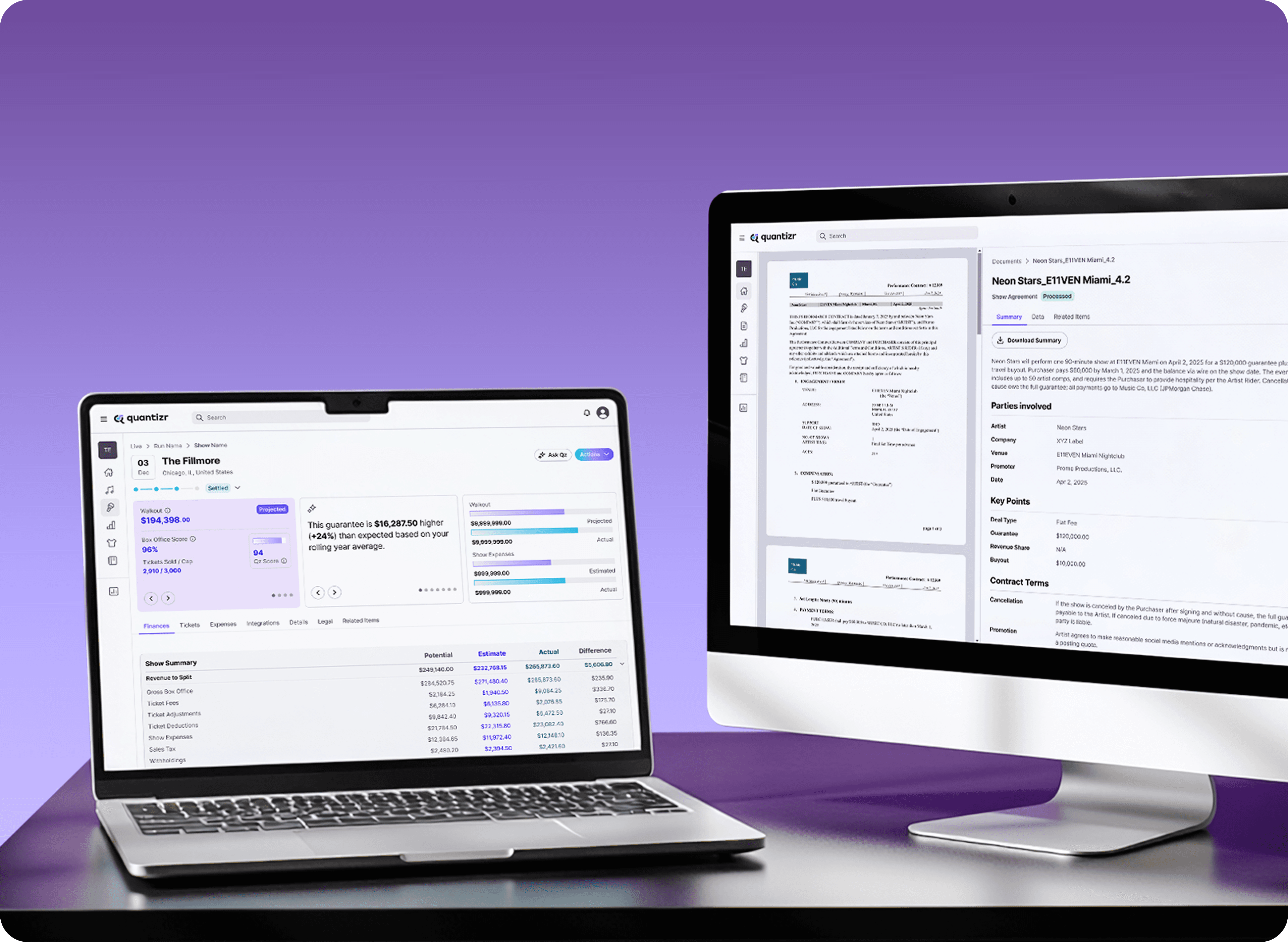 Quantizr was designed alongside managers, business managers, and agents who live the day-to-day challenges of live entertainment.