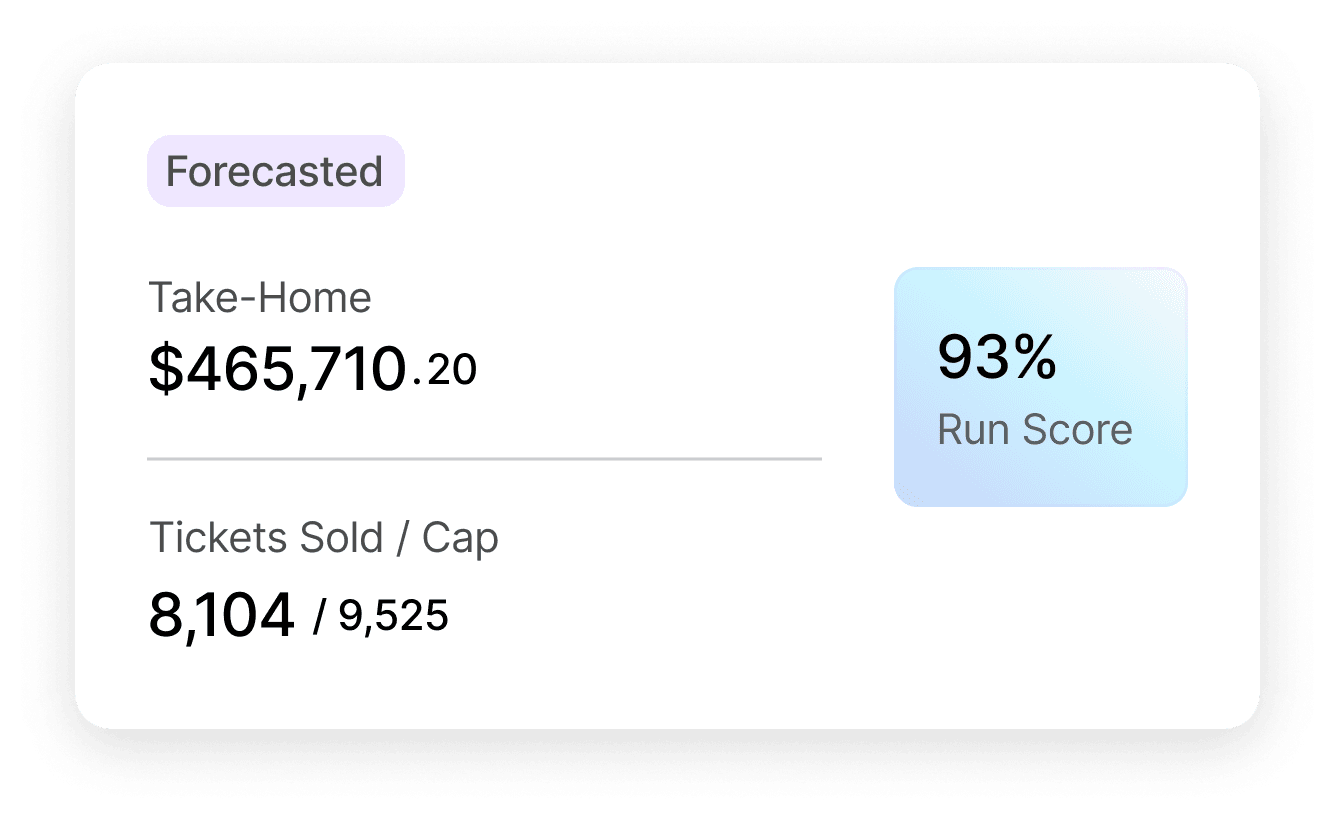 Forecast revenue and expenses to see where your tours make and lose money. Compare multiple offers to spot the most competitive terms. Optimize artist earnings based on data, not just intuition.
